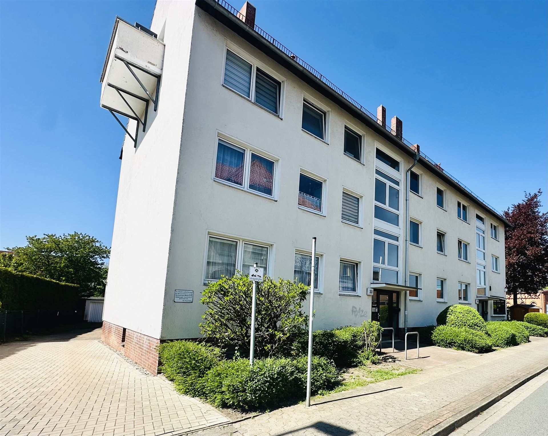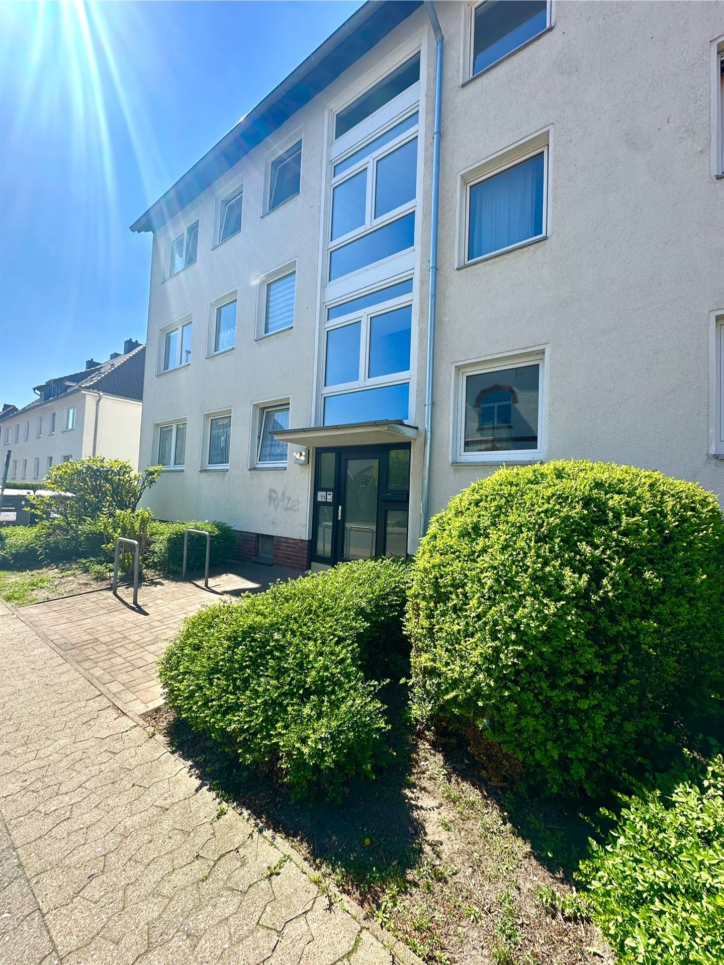Das Mehrfamilienhaus sowie das Treppenhaus präsentieren sich in einem äußerst gepflegten Zustand. Zudem gehört ein Einstellplatz direkt am Haus zur Wohnung – Schluss mit der Parkplatzsuche!