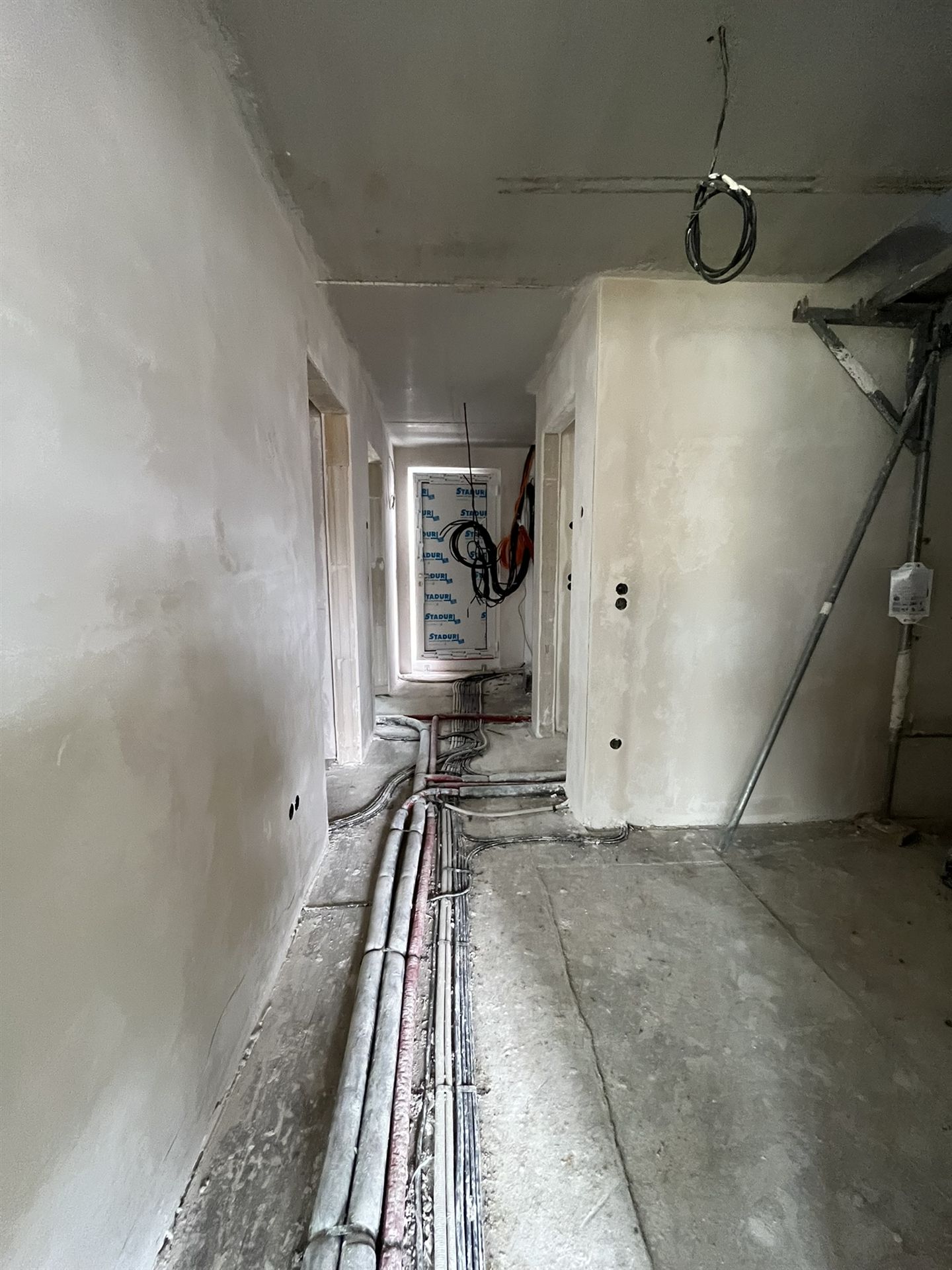 Das Haus war ursprünglich Teil eines Bauträgerprojekts, das aufgrund einer Insolvenz vor rund einem Jahr unterbrochen wurde. Die Eigentümergemeinschaft (real geteiltes Eigentum – keine WEG) hat sich erfolgreich aus dem Insolvenzverfahren gelöst und koordiniert seitdem alle weiteren Schritte eigenständig.