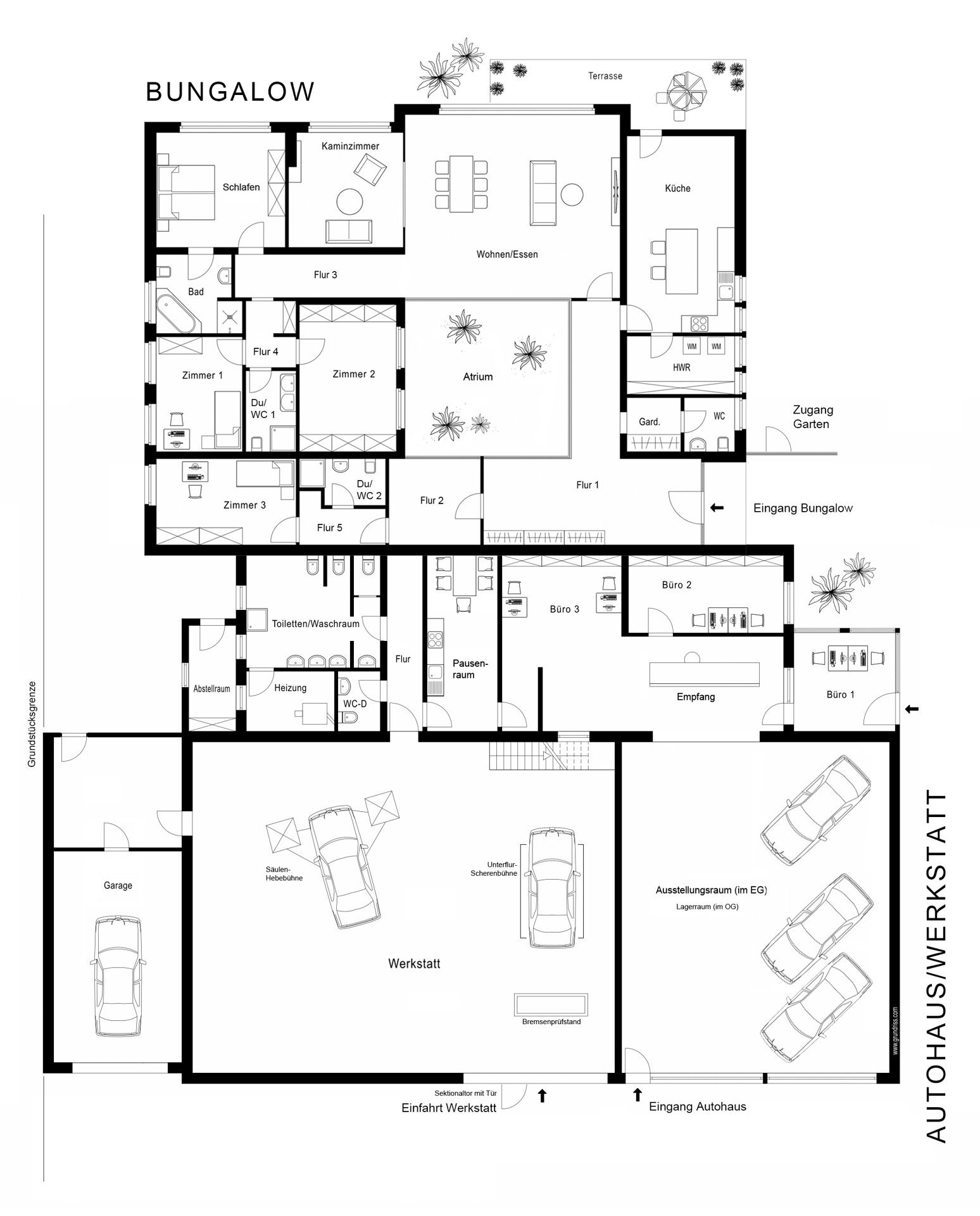 Auf dem 4.583 m² großen Grundstück im etablierten Gewerbegebiet "Brunslohe" in Barsinghausen vereinen sich bestehende Ausstellungs- und Werkstattflächen (insgesamt 587 m² Gewerbe-/Nutzfläche) mit einem angeschlossenen und trotzdem separaten, großzügigen Bungalow (267 m² Wohnfläche) zu einem seltenen Ensemble mit außergewöhnlich vielseitigem Nutzungspotenzial.